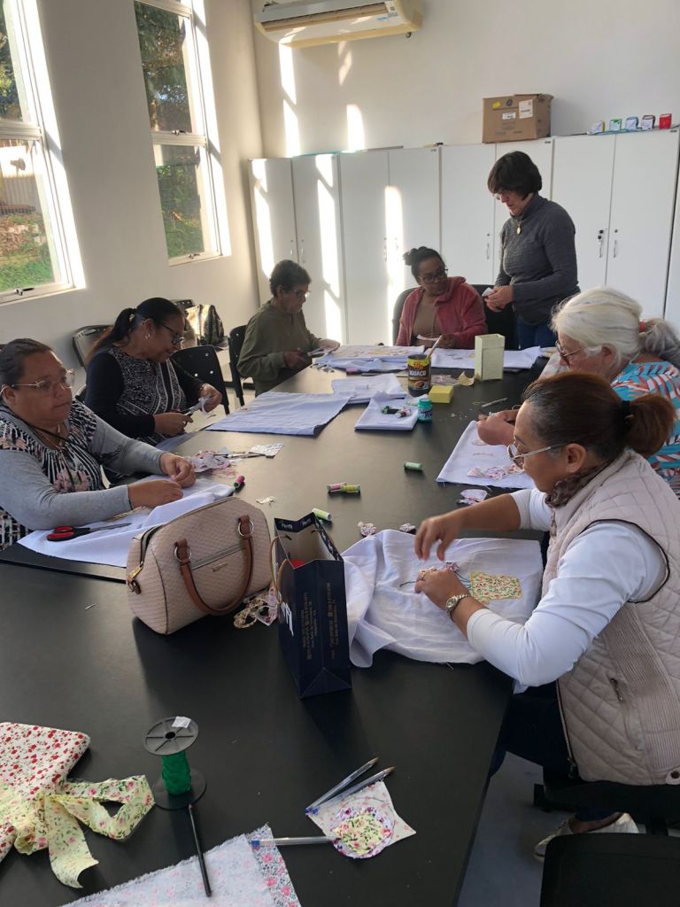 Na tarde desta segunda-feira, 21, o Grupo Acolher, vinculado ao Núcleo de Apoio à Atenção Básica (NAAB), deu início a uma nova atividade artesanal, a confecção de panos de prato com aplicação da técnica de patchwork.