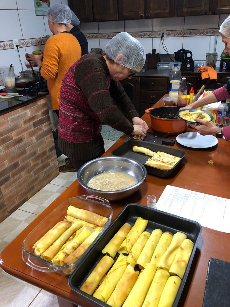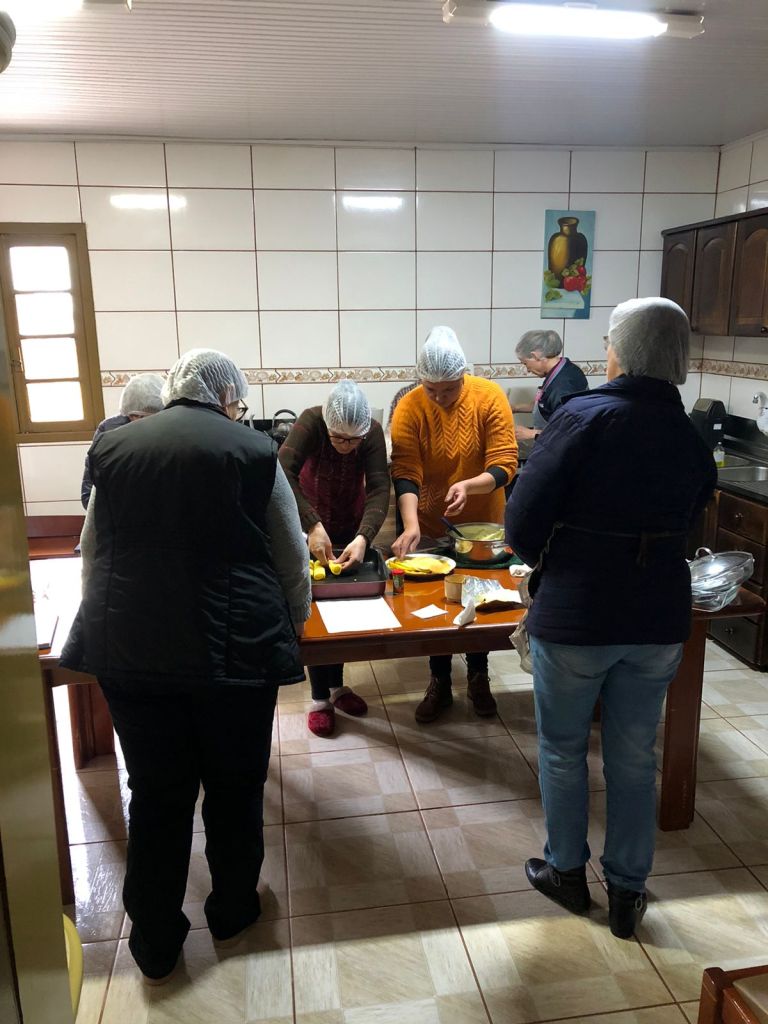 Durante o encontro, as participantes prepararam panquecas de vinho, atividade culinária sugerida pelas próprias integrantes do grupo.