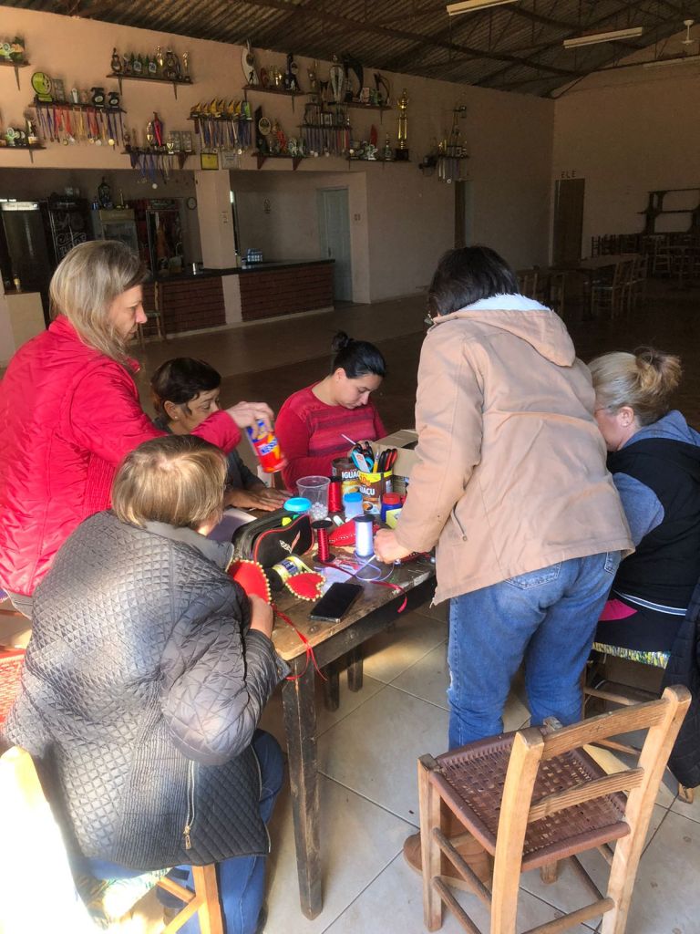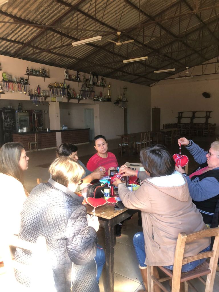 Durante o encontro, foi finalizada a confecção de sachês em formato de coração feitos em feltro, atividade artesanal iniciada no encontro anterior e desenvolvida pelas participantes.