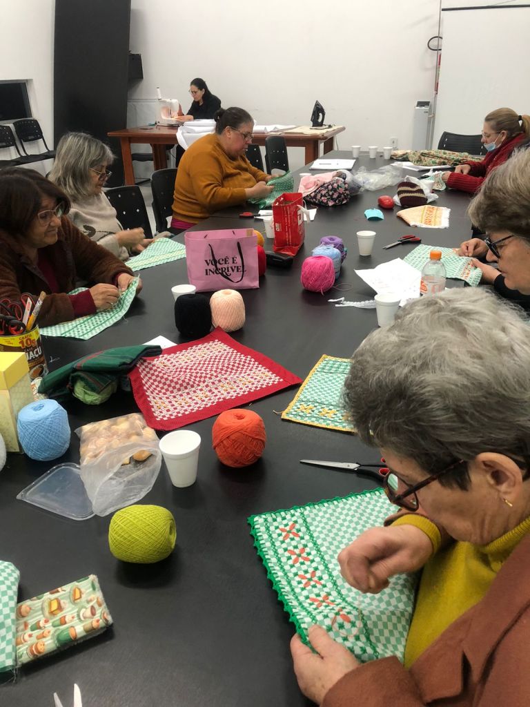 Na noite desta quarta-feira (30), o grupo Psicoterapia 1, vinculado ao NAAB, esteve reunido em mais um encontro semanal. Durante a atividade, foi finalizado o bordado em tecido xadrez, trabalho artesanal iniciado anteriormente e desenvolvido pelas participantes do grupo.
