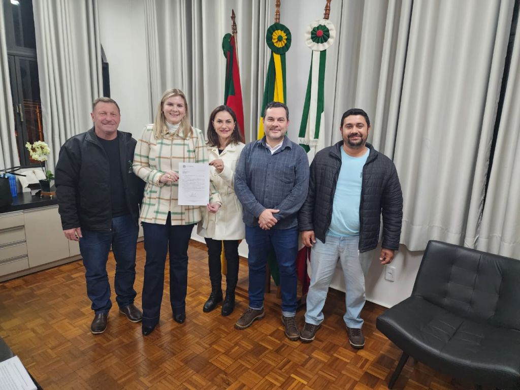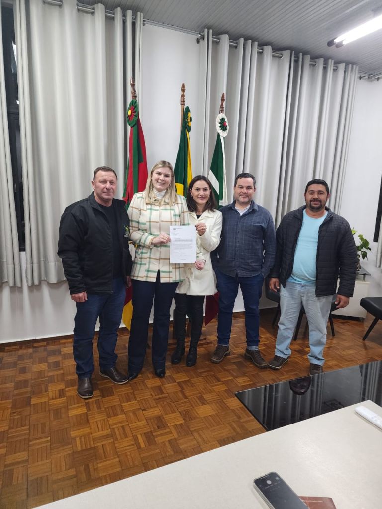 Na ocasião, a Prefeita Flaviana Brandemburg Basso recebeu a bancada do MDB de Pejuçara, acompanhada do presidente municipal do partido, João Luiz Valandro, que oficializaram o repasse do recurso ao município.