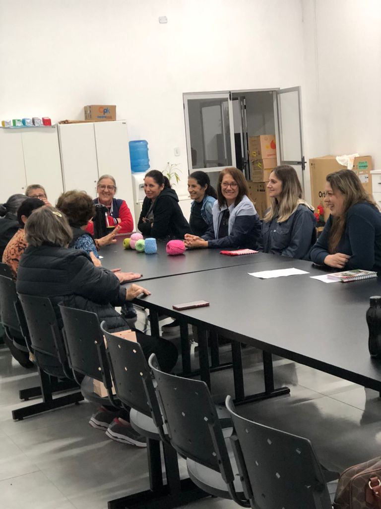 Na ocasião, foi iniciada uma atividade de bordado vagonite no tecido de itamine, com a confecção de um trilho de mesa. As participantes também contribuíram trazendo alimentos prontos, o que proporcionou um momento de confraternização e acolhimento.