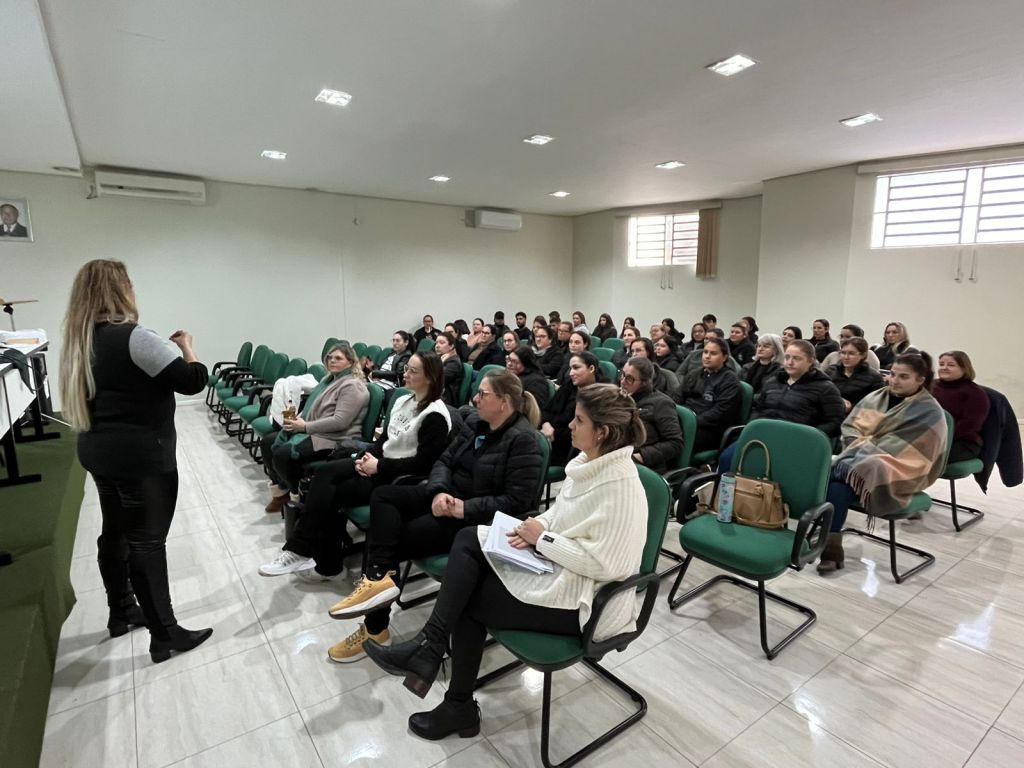 Na tarde desta segunda-feira (25), professores e monitores da EMEI Maria Schuster participaram de uma reunião interna realizada no Sindicato Rural.