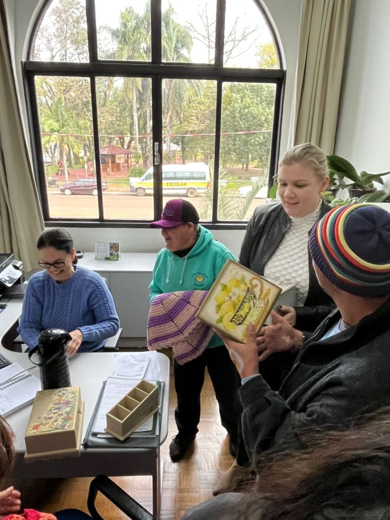 Além disso, os alunos estiveram na Prefeitura, oferecendo artesanatos à prefeita Flaviana Brandemburg Basso e demais servidores municipais.
