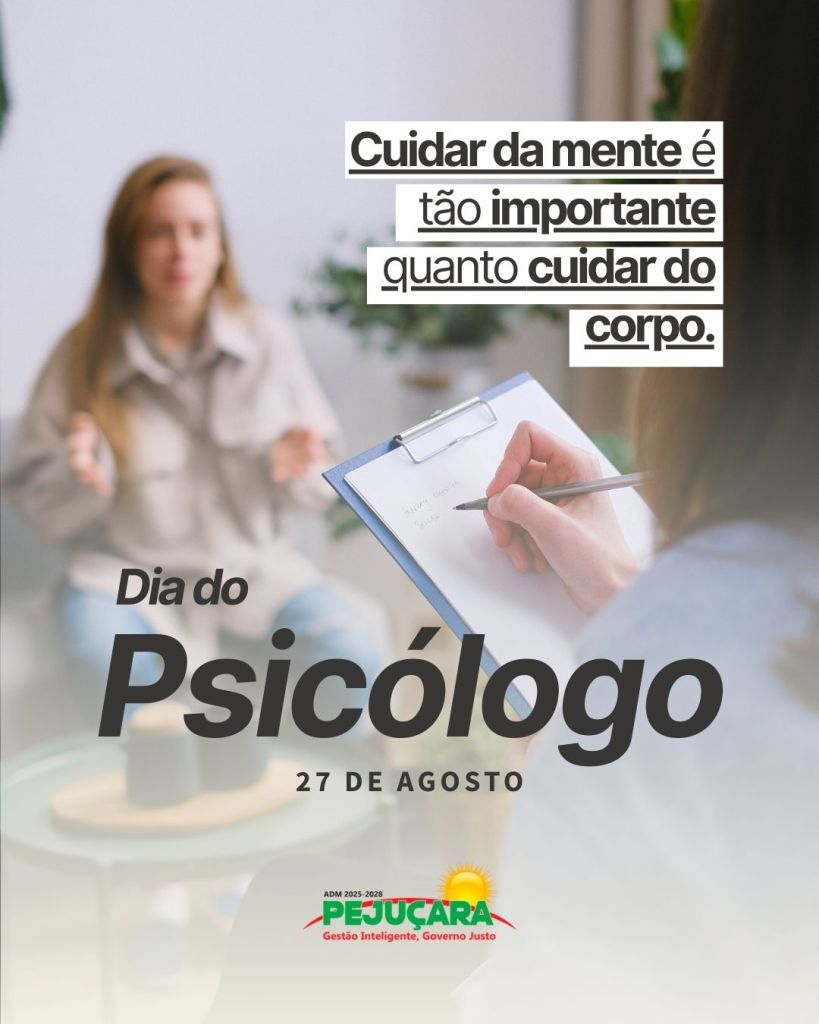 A Administração Municipal parabeniza os psicólogos pelo seu dia, reconhecendo o compromisso e a dedicação desses profissionais que atuam nas repartições públicas e contribuem para o bem-estar da comunidade. Feliz Dia do Psicólogo!