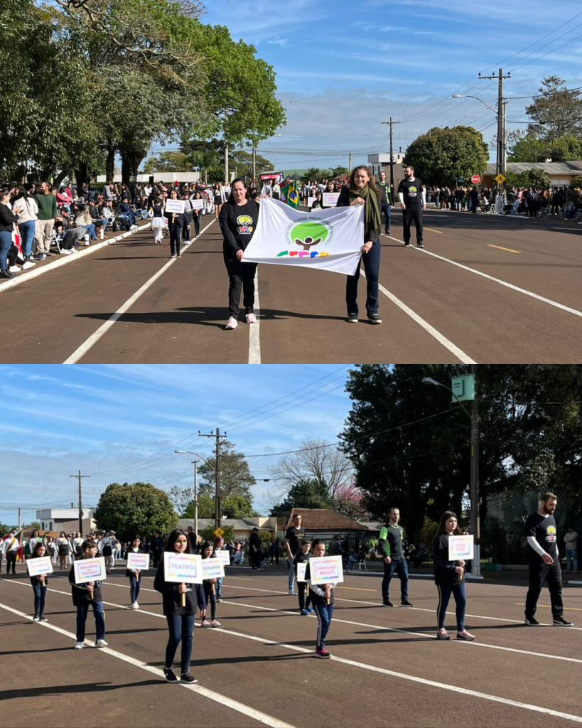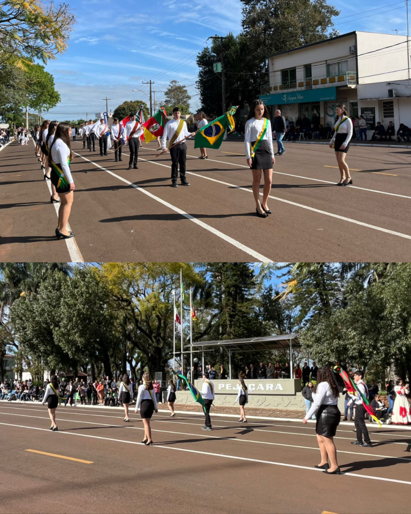 A solenidade de abertura foi marcada pelo hasteamento das bandeiras, realizado pela prefeita Flaviana Brandemburg Basso (nacional), pelo vice-prefeito Marcos Villani (estadual) e pela secretária de Educação Emanueli Basso Quaini (municipal). Logo após, a Banda Marcial do Centro Educacional Iara Bergoli (CEPIB), sob regência do professor Rodrigo Martins, conduziu com precisão a marcha dos pelotões em frente ao palanque oficial. Integrando a apresentação, as alunas do grupo de bailarinas do ballet do CEPIB acompanharam a banda. O Corpo de Bandeiras foi formado por 24 alunos dos anos finais da Escola Estadual de Educação Básica Ângelo Furian e do 9º ano da Escola Municipal de Ensino Fundamental Pejuçara.