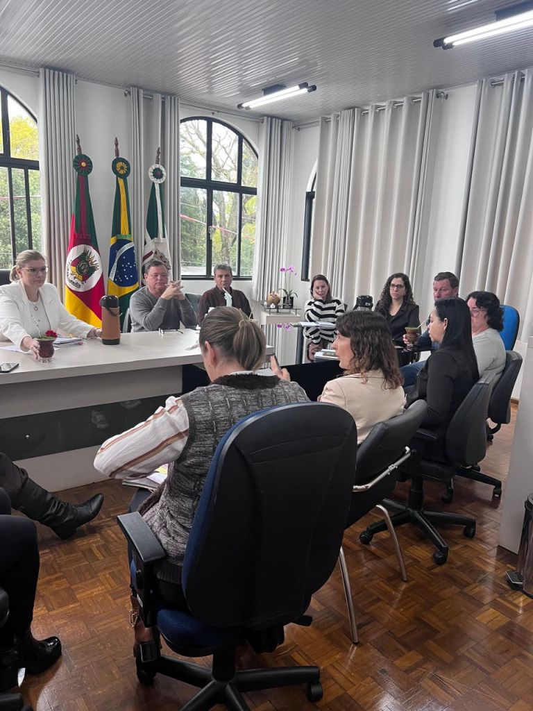 Na manhã desta segunda-feira (15), a prefeita Flaviana Brandemburg Basso, à frente do Poder Executivo, reuniu-se com o vice-prefeito Marcos Villani e os secretários municipais para discutir estratégias de contenção de gastos diante do cenário econômico que exige ajustes no orçamento municipal.