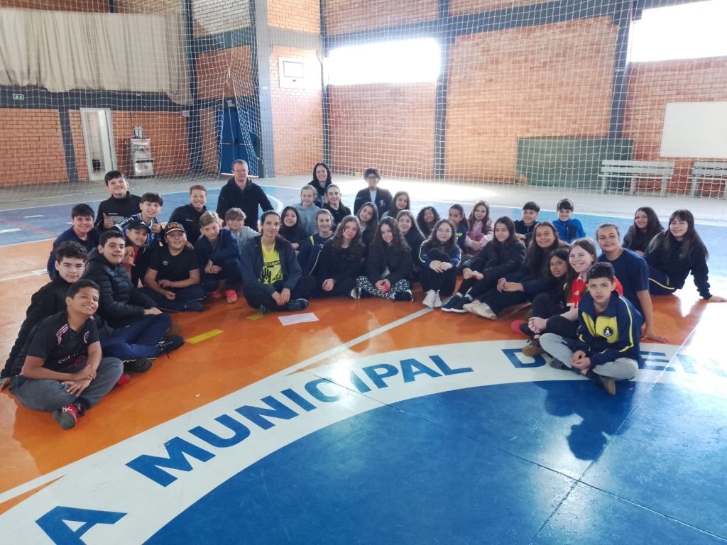 Na manhã desta quinta-feira, 25, os alunos do 5º ao 9º ano da Escola Municipal de Ensino Fundamental Pejuçara participaram de uma atividade alusiva ao Setembro Amarelo, conduzida pelas psicólogas Évora Hempe e Gabrieli Dallabrida, da Secretaria de Saúde, e Cláudia Tassotti, da Secretaria de Educação, com o acompanhamento dos professores Ariel Wächter e Camila Mioso.