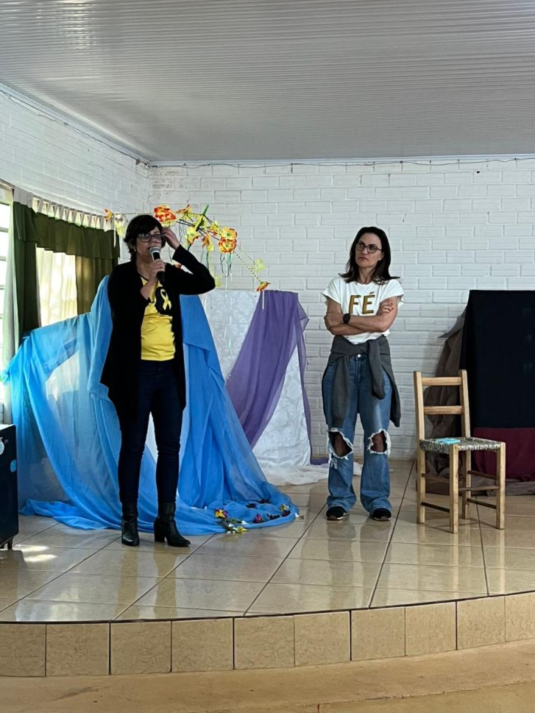 Durante a programação, a esquete teatral “Entre Silêncios e Vozes”, escrita por Marieli Bottega, coordenadora do CEPIB, emocionou o público. A apresentação contou com a participação de servidores municipais que integraram a encenação, reforçando a mensagem de valorização da vida e da necessidade de cuidado com a saúde emocional.