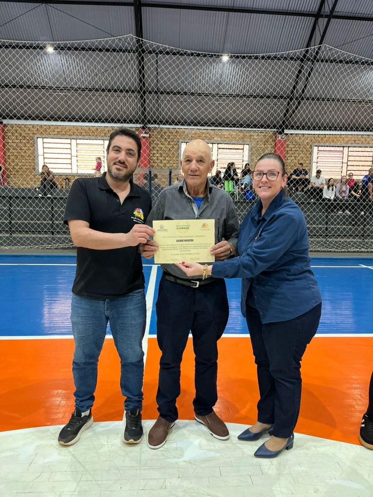 O homenageado da primeira rodada foi o senhor Agenor Nogueira, referência do futsal no município, que recebeu reconhecimento por sua trajetória e contribuição para o esporte local.