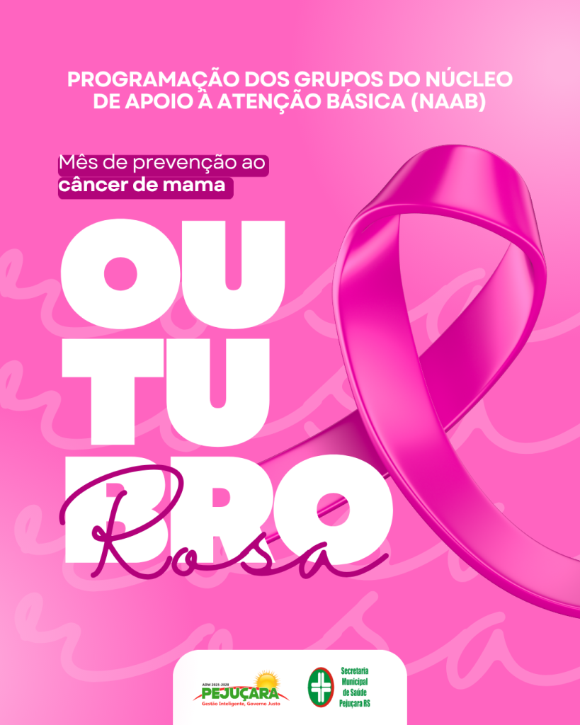 Durante o mês de outubro, dedicado à prevenção do câncer de mama, médicos e agentes de Saúde participarão de encontros nos grupos do NAAB para orientar sobre cuidados preventivos, exames de rotina e autocuidado, reforçando o compromisso da Secretaria Municipal de Saúde com a promoção da saúde e da qualidade de vida das mulheres do município.