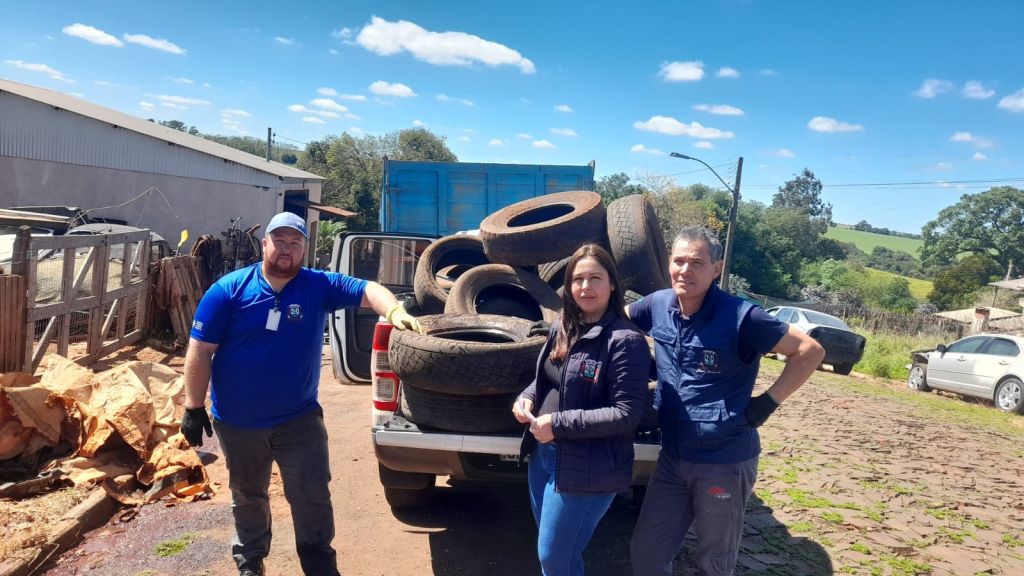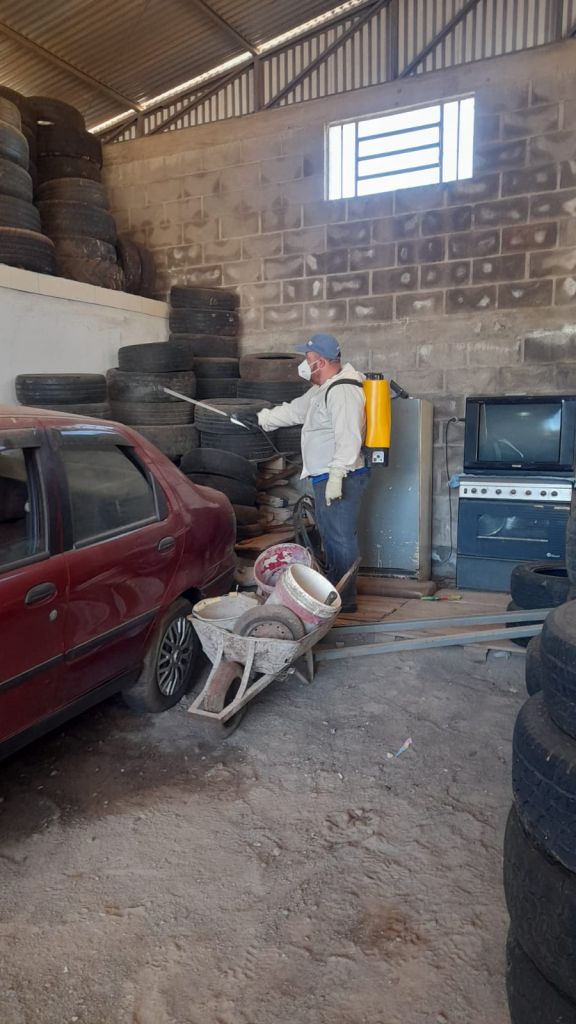 Foram recolhidos pneus e aplicados inseticidas em borracharias, oficinas e lavagens