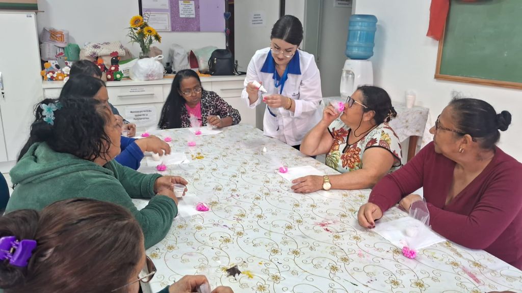 Na manhã de quarta-feira (15), o grupo do PAIF (Programa de Atenção Integral à Família), da Secretaria de Assistência Social, Trabalho e Habitação, sob a coordenação da secretária Daiane Maccagnan Porn, participou de uma atividade especial alusiva ao Outubro Rosa. Durante o encontro, as participantes confeccionaram sachês perfumados, em um momento que reuniu aprendizado, descontração e valorização do trabalho artesanal.