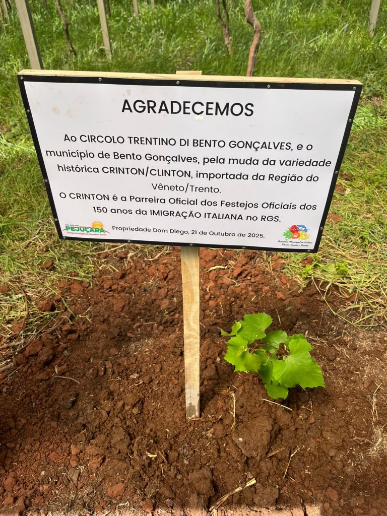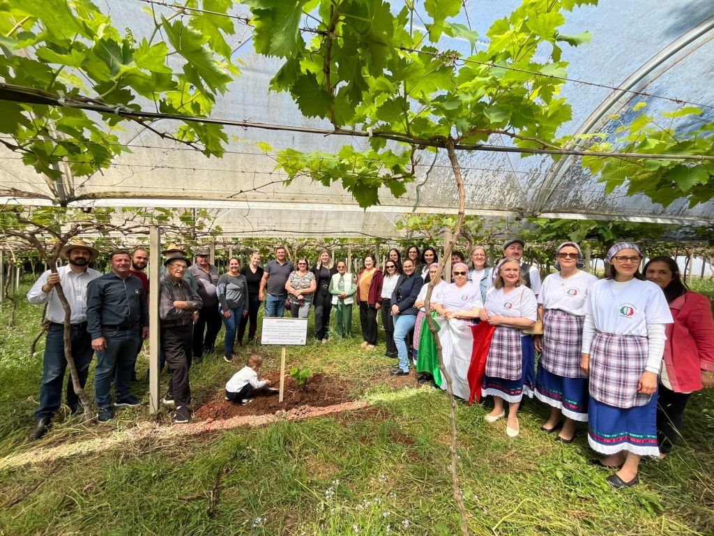 Na manhã desta terça-feira (21), foi realizado um ato simbólico e histórico em alusão aos 150 anos da imigração italiana no Rio Grande do Sul, com o plantio de uma muda de parreira da variedade Crinto, originária da região de Vêneto/Trento, na Itália.