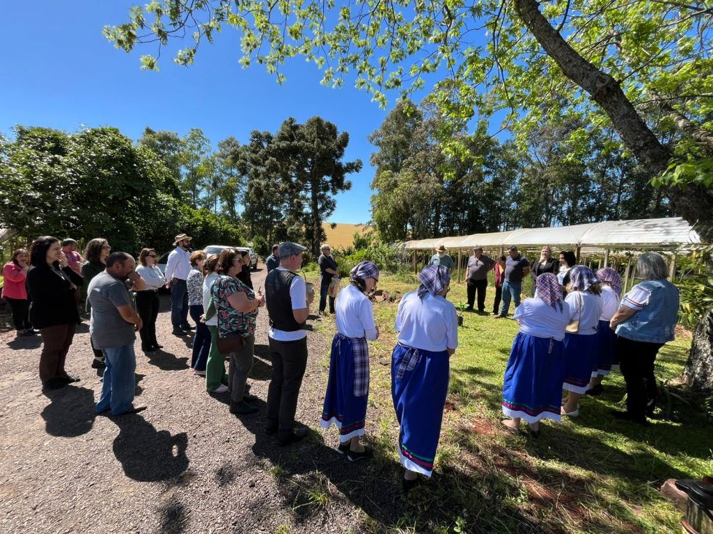 O momento aconteceu na propriedade Dom Diego, de Diego Costa Beber Pellegrin, e contou com a presença da prefeita Flaviana Brandemburg Basso, da secretária de Cultura, Turismo, Esporte e Eventos, Thielle Matella, além de demais secretários municipais, vereadores, integrantes do Grupo Pensiero, representantes da ACIPE – Associação Cultural Italiana de Pejuçara, e membros da família Pellegrin.
