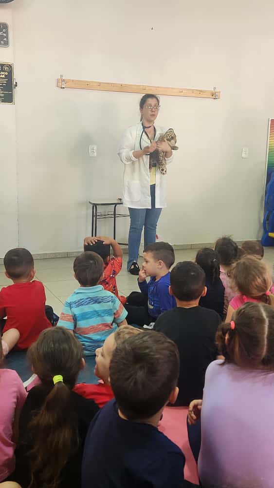 Durante a ação, foi entregue a cartilha para que os alunos levassem para casa, permitindo que os pais acompanhassem o aprendizado. Além disso, cada criança recebeu o selo de “Amigo dos Animais”, reconhecendo sua participação e incentivando atitudes de cuidado, respeito e responsabilidade para com os animais.