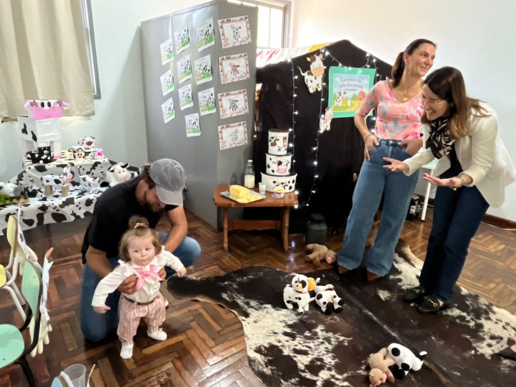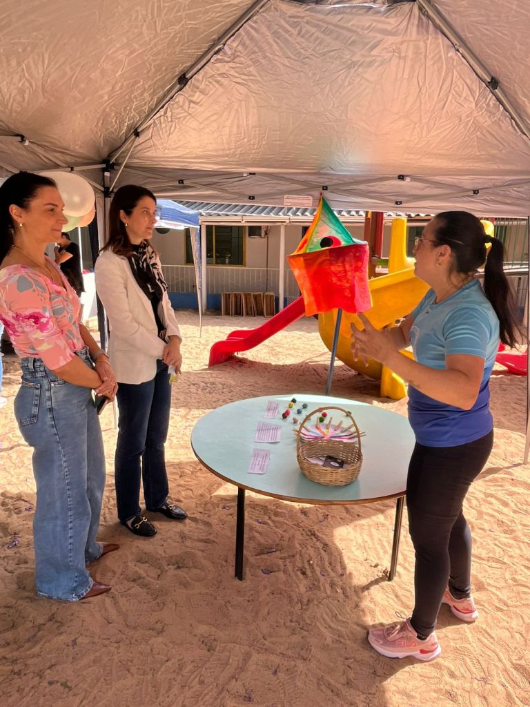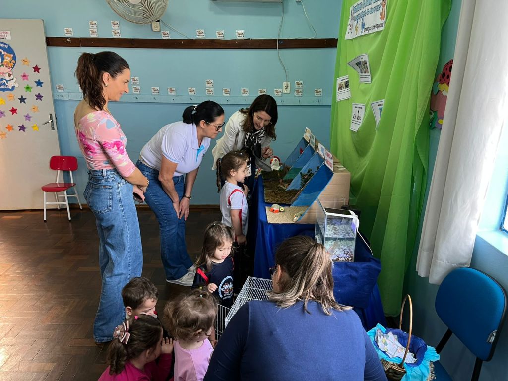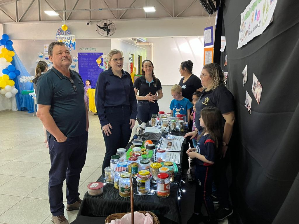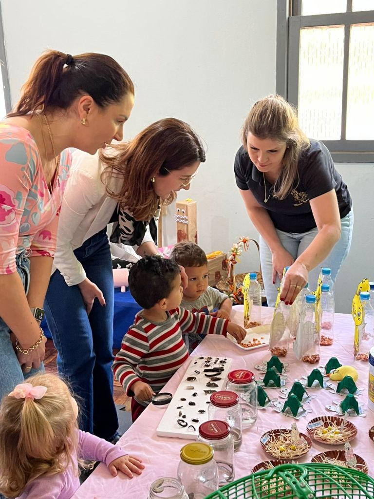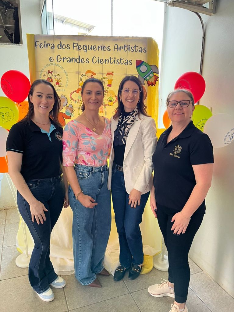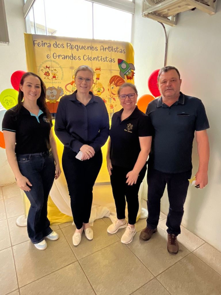 Na manhã desta sexta-feira (24), a Prefeita Flaviana Brandemburg Basso, acompanhada do Vice-Prefeito Marcos Villani, da Secretária de Educação Emanueli Basso Quaini e de profissionais da SME, visitou a Feira dos Pequenos Artistas e Grandes Cientistas, organizada pela EMEI Maria Schuster.