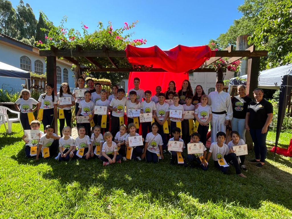 O Centro Educacional Iara Bergoli (CEPIB) realizou, na tarde de quarta-feira (3), a formatura da oficina de Kung Fu, ministrada pelo professor Marco Aurélio Ballin. A atividade teve início em março de 2025 e, ao longo do ano, envolveu 35 alunos, com foco no desenvolvimento de disciplina, responsabilidade, cooperação e outras habilidades essenciais para a formação dos estudantes.
