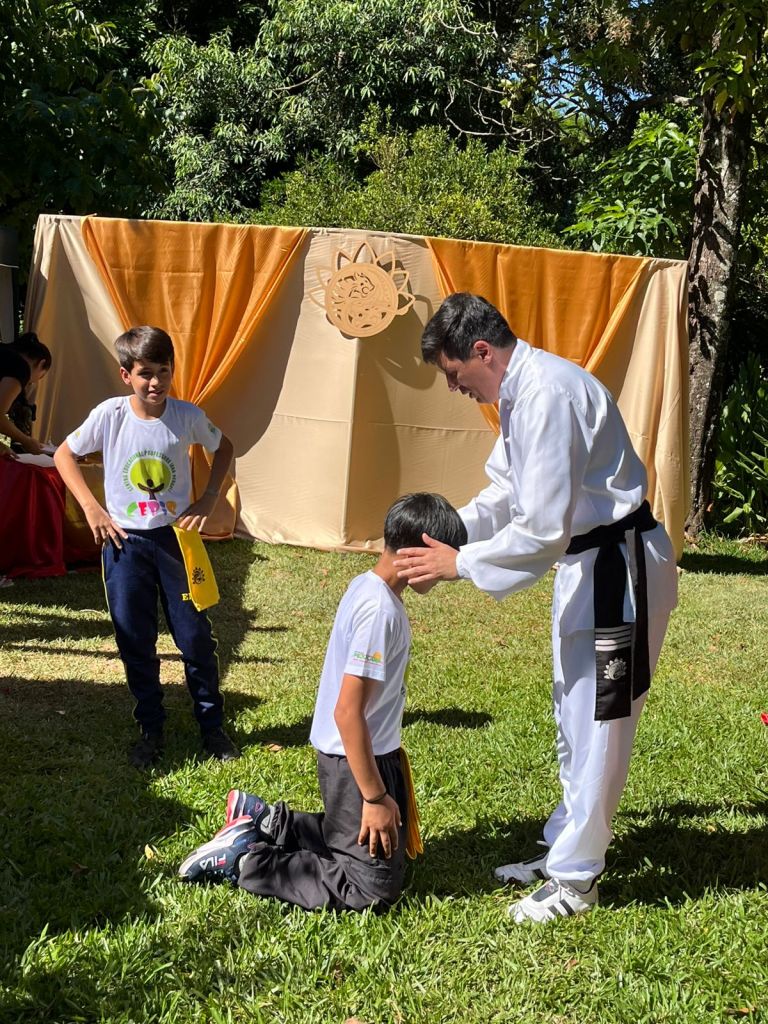 A cerimônia marcou o encerramento das atividades do grupo, com entrega de faixas e certificados aos participantes de diferentes idades. Durante o evento, o professor Marco Aurélio anunciou os novos “sidaes”, alunos que se destacaram e atuarão como auxiliares nas próximas turmas. Também houve reconhecimento a estudantes pelo desempenho escolar, dedicação, comprometimento e superação.