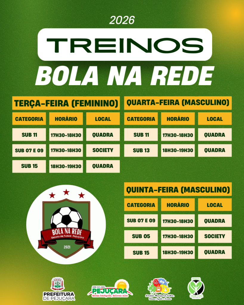 Nesta semana, retornam os treinos do Bola na Rede. As atividades acontecem conforme os horários e locais definidos para cada categoria: