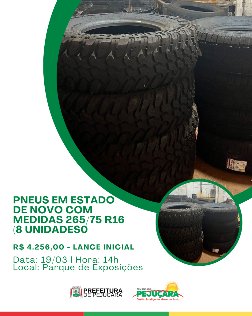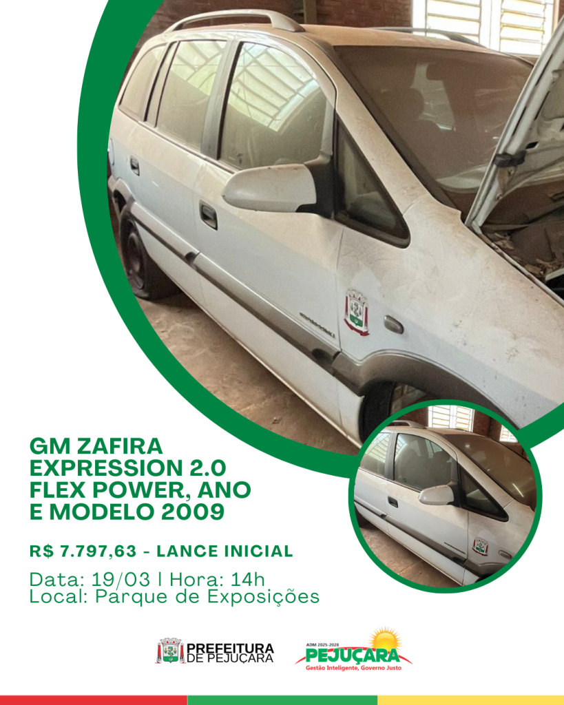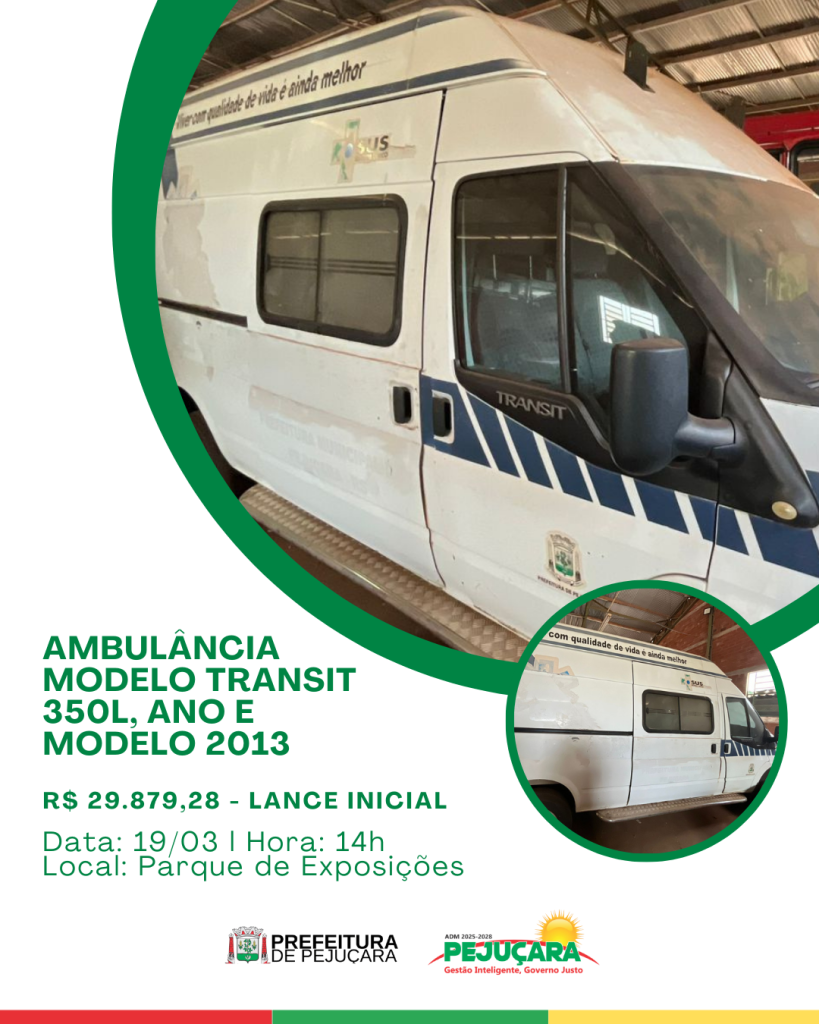 A Administração Municipal de Pejuçara realizará leilão público, na modalidade presencial e on-line (maior lance), para venda de bens inservíveis do Município.