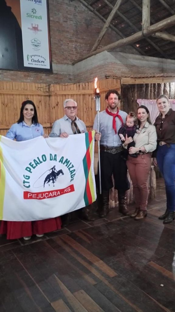 Na manhã do domingo, 31, a distribuição da Chama Crioula 2025, no âmbito da 9ª Região Tradicionalista, começou na cidade de Quinze de Novembro, no Camping Aurora. Estiveram representando Pejuçara o patrão do CTG Pealo da Amizade, Diovani Lopes Villani, o homenageado dos Festejos Farroupilhas de 2025, Vilson Bonfada, a Secretária de Cultura, Turismo, Esporte e Eventos, Thielle Mastella, e a coordenadora de Cultura e Eventos, Silvia Tanaura Belles da Cruz.