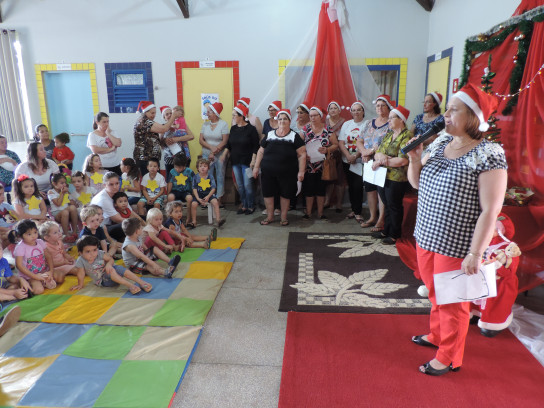 O prefeito Eduardo Buzzatti, e as secretárias de educação, Carla Regina Decian e Daiane Macangnan Porn de assistência social, participaram do momento que terminou com o desejo de um Natal feliz e abençoado a todas as crianças da EMEI e seus familiares. A Primeira Dama Maria Lúcia fez menção ao Papai Noel ao lembrar que naquela tarde não era o bom velhinho que ali estava, mas sim as sessentinhas que com seu trabalho amoroso e dedicado estavam fazendo, naquele momento, muitos coraçãozinhos felizes.