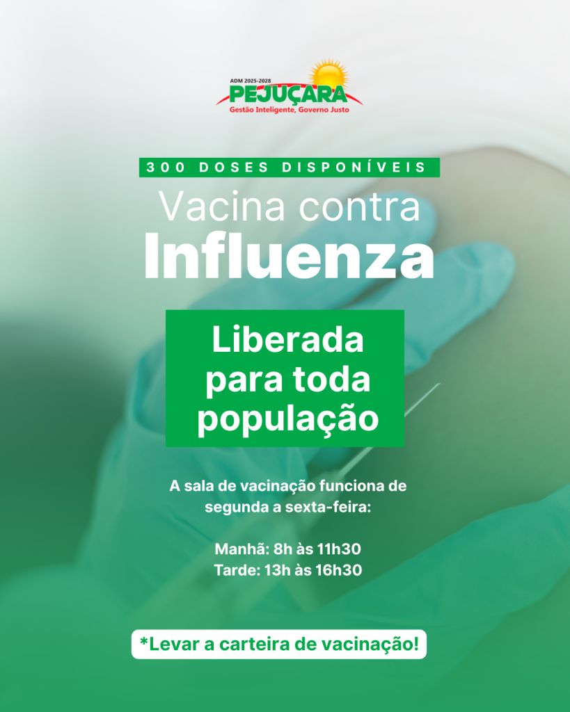 O município ainda conta com 300 doses disponíveis da vacina contra a Influenza, que está liberada para toda a população a partir dos 6 meses de idade.