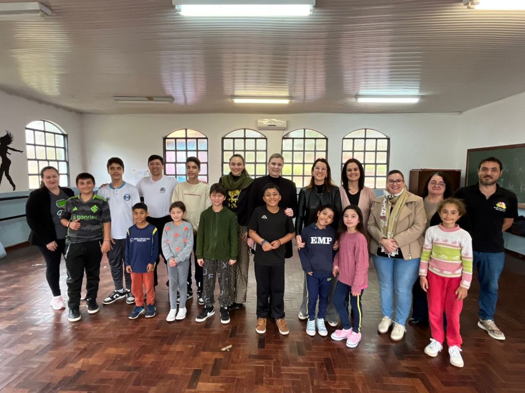 Durante a programação, estiverem presentes a Prefeita Flaviana Brandemburg Basso; a secretária de Educação, Emanueli Basso Quaini; a secretária de Administração, Sandra Oberto Valandro; a secretária de Cultura, Turismo, Esporte e Eventos, Thielle Mastella; e a secretária da Fazenda, Dulcimara Dal Forno Alves.