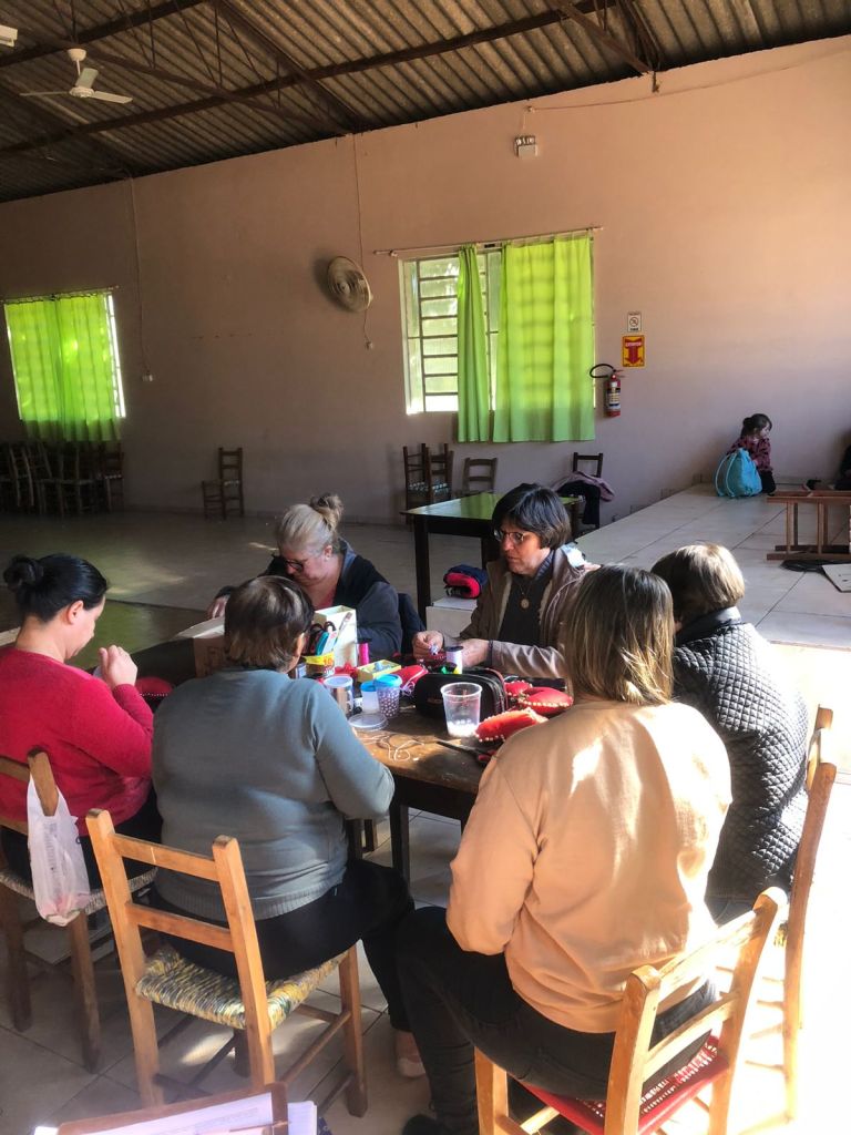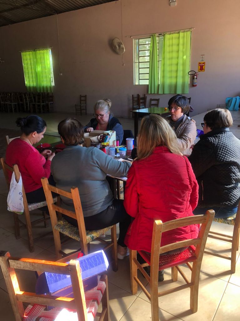 Durante o encontro, foi finalizada a confecção de sachês em formato de coração feitos em feltro, atividade artesanal iniciada no encontro anterior e desenvolvida pelas participantes.