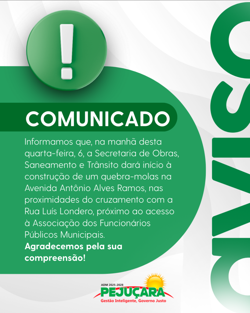 COMUNICADO: Construção de um quebra-molas na Avenida Antônio Alves Ramos