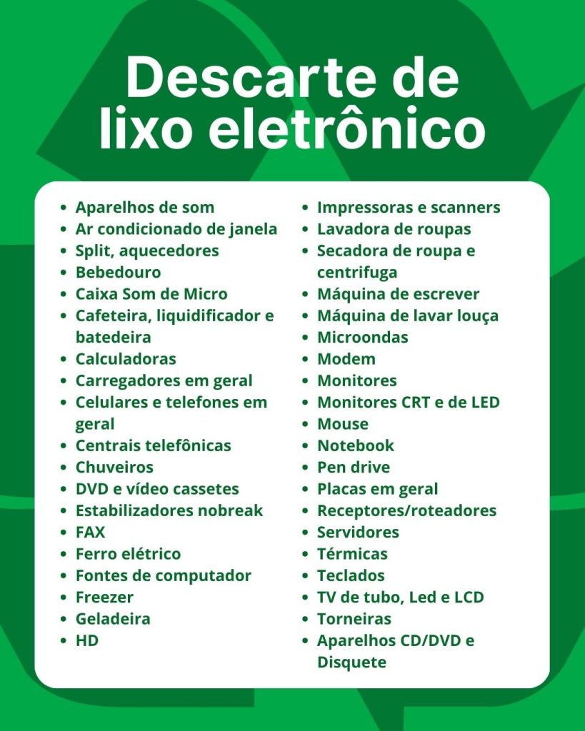 O município de Pejuçara atingiu 100% de recolhimento do lixo eletrônico gerado, com 26.300 kg coletados em 2024, garantindo o destino ambientalmente correto de todo o material descartado pela população.