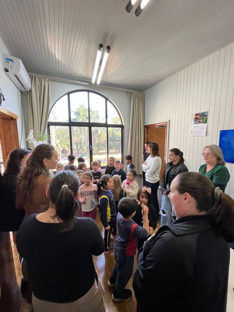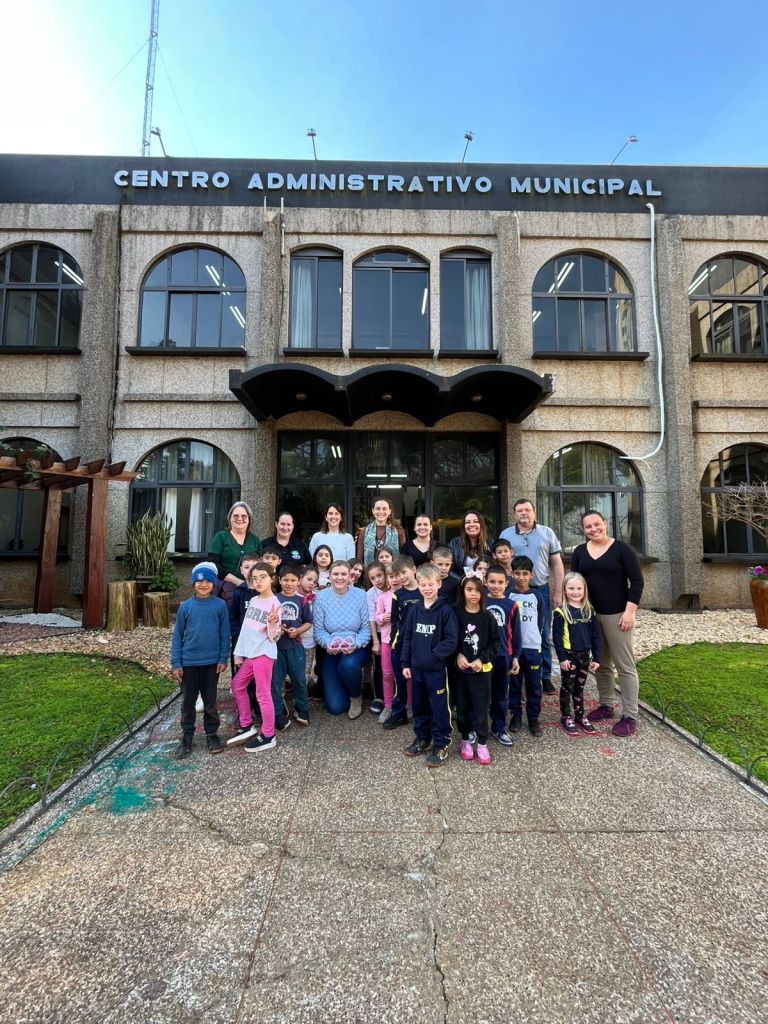 Os alunos estiveram acompanhados pelos professores, oficineiros e pela equipe gestora do CEPIB. Durante a atividade, também visitaram a Secretaria de Educação (SME), sob a gestão da secretária Emanuelli Basso Quaini, e presentearam a secretária e os demais funcionários com o “Morango do Amor”.