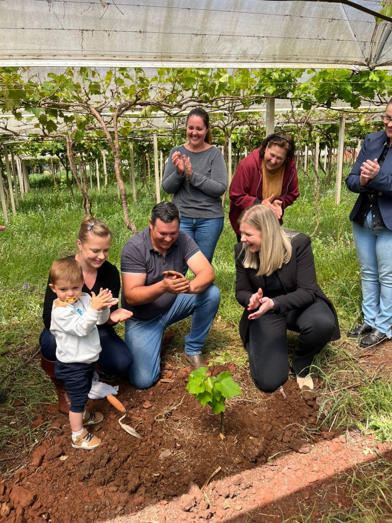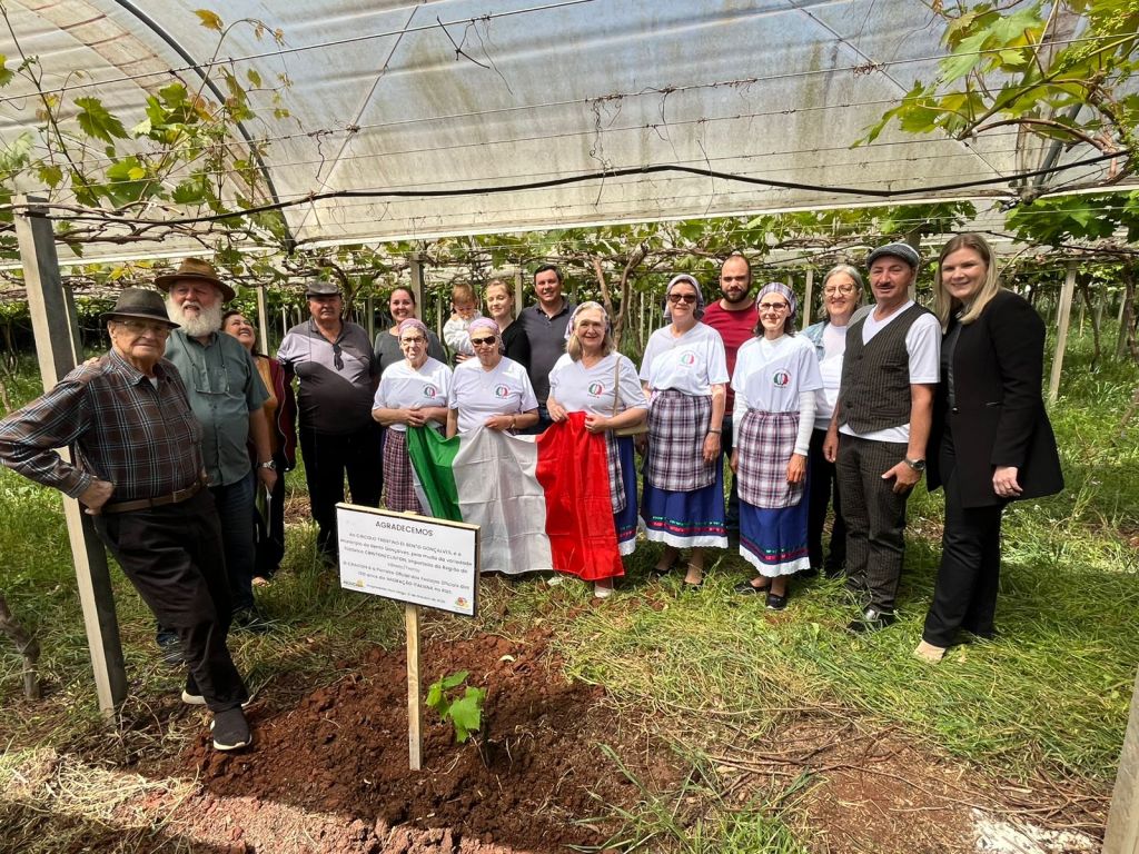 Na manhã desta terça-feira (21), foi realizado um ato simbólico e histórico em alusão aos 150 anos da imigração italiana no Rio Grande do Sul, com o plantio de uma muda de parreira da variedade Crinto, originária da região de Vêneto/Trento, na Itália.