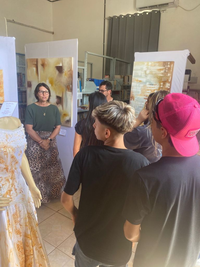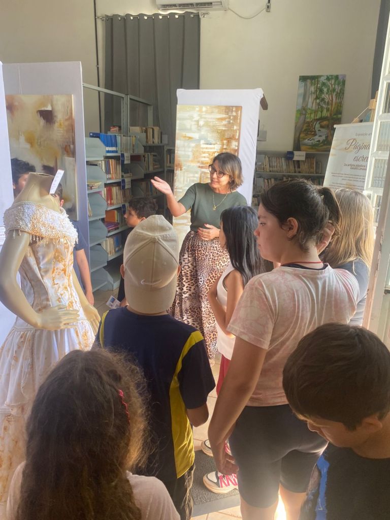 A Biblioteca Pública Municipal Machado de Assis recebeu, na quinta-feira (11), os alunos dos 4º e 8º anos da Escola Municipal Pejuçara, acompanhados por seus professores, para uma visita à exposição “Páginas que Escrevi”, da artista plástica Luciana Gelatti Linassi.