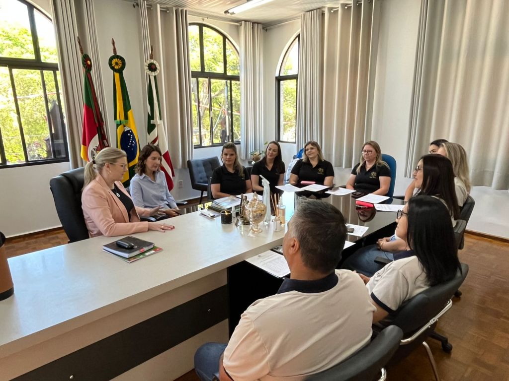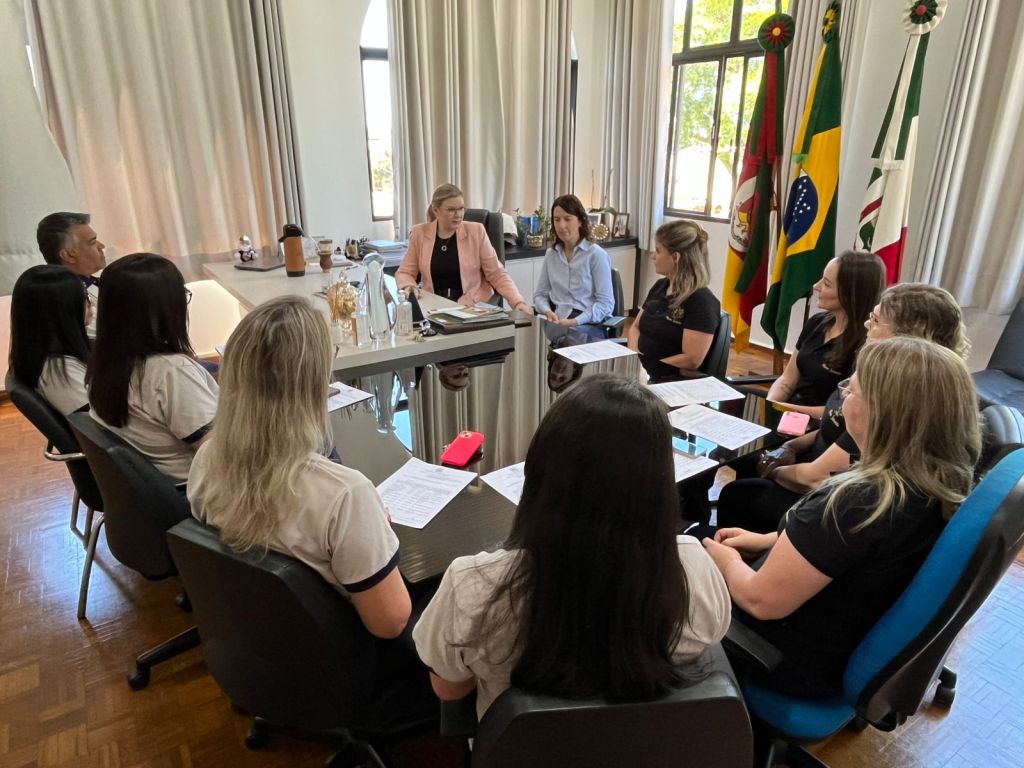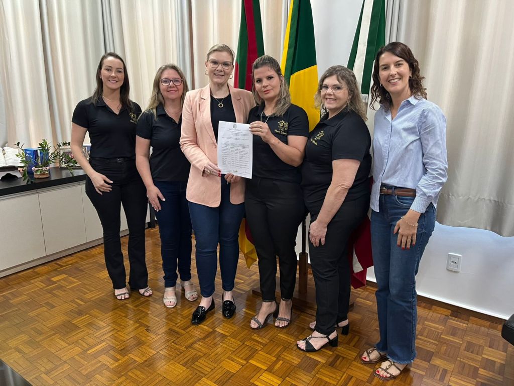 A cerimônia ocorreu no Gabinete Municipal, com a presença da Prefeita Flaviana Brandemburg Basso, da Secretária de Educação, Emanueli Basso Quaini, e dos profissionais que integram as equipes diretivas de cada escola.