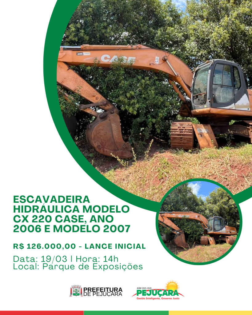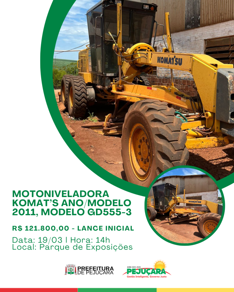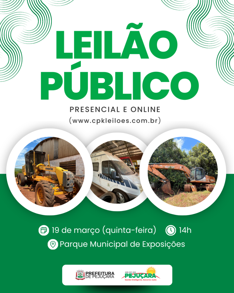 A Administração Municipal de Pejuçara realizará leilão público, na modalidade presencial e on-line (maior lance), para venda de bens inservíveis do Município.