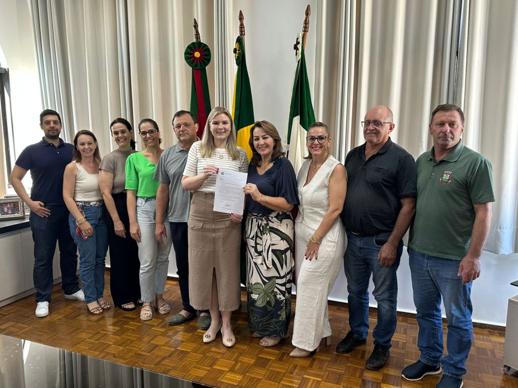 Na manhã desta quinta-feira (26), a prefeita Flaviana Brandemburg Basso recebeu, junto ao Executivo Municipal, a assessora Vanice Matos, representante do deputado federal Osmar Terra. Durante o encontro, foi formalizada a entrega de uma emenda especial no valor de R$ 400 mil, destinada ao município.