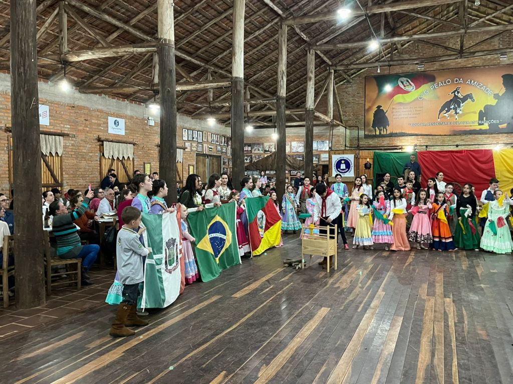 A programação contou ainda com a participação das invernadas do CTG. Por fim, a noite encerrou com um tradicional jantar gaúcho, proporcionando um momento de integração entre famílias, comunidade escolar e público presente.