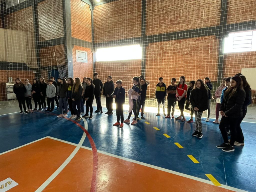 Na manhã desta quinta-feira, 25, os alunos do 5º ao 9º ano da Escola Municipal de Ensino Fundamental Pejuçara participaram de uma atividade alusiva ao Setembro Amarelo, conduzida pelas psicólogas Évora Hempe e Gabrieli Dallabrida, da Secretaria de Saúde, e Cláudia Tassotti, da Secretaria de Educação, com o acompanhamento dos professores Ariel Wächter e Camila Mioso.