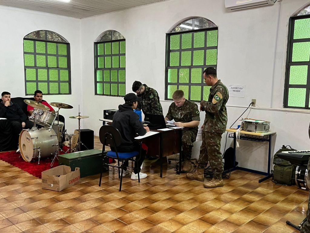 Na manhã desta segunda-feira, 8 de setembro, uma equipe do 27º GAC de Ijuí esteve em Pejuçara para realizar a inspeção de saúde dos jovens alistados para o serviço militar obrigatório. A atividade ocorreu no Centro Educacional Professora Iara Bergoli (CEPIB) e contou com a presença do responsável pela Junta Militar de Pejuçara, João Martins.