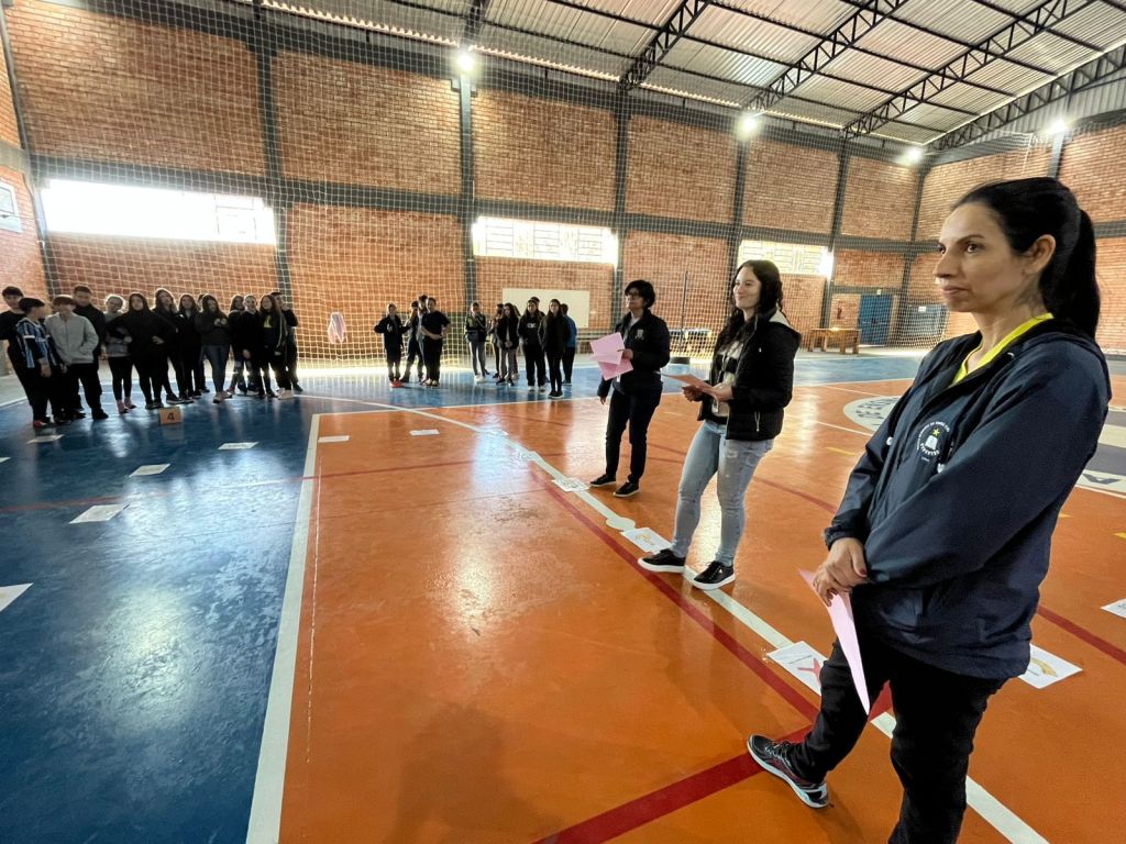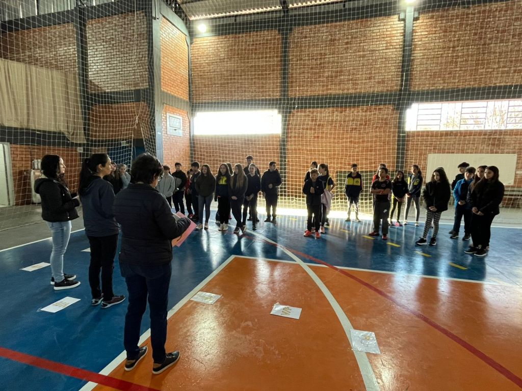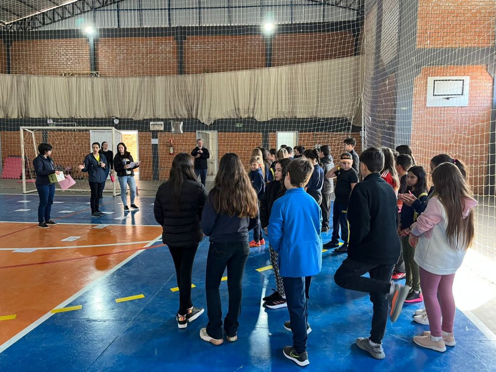Na manhã desta quinta-feira, 25, os alunos do 5º ao 9º ano da Escola Municipal de Ensino Fundamental Pejuçara participaram de uma atividade alusiva ao Setembro Amarelo, conduzida pelas psicólogas Évora Hempe e Gabrieli Dallabrida, da Secretaria de Saúde, e Cláudia Tassotti, da Secretaria de Educação, com o acompanhamento dos professores Ariel Wächter e Camila Mioso.