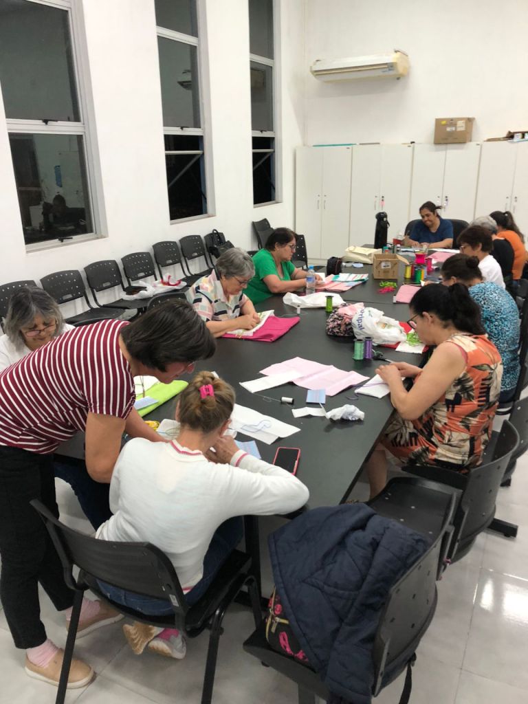 Além disso, o grupo de Psicoterapia iniciou um trabalho de artesanato, desenvolvendo bordados com fita de cetim, no anexo da Secretaria Municipal de Saúde.