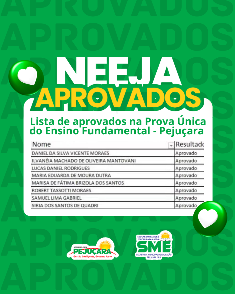 Lista de aprovados na Prova Única do Ensino Fundamental de Pejuçara