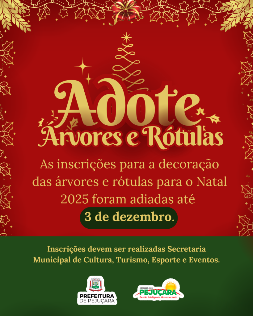 Pejuçara está se preparando para o Natal 2025, e você ainda pode participar da decoração das árvores e rótulas da cidade!