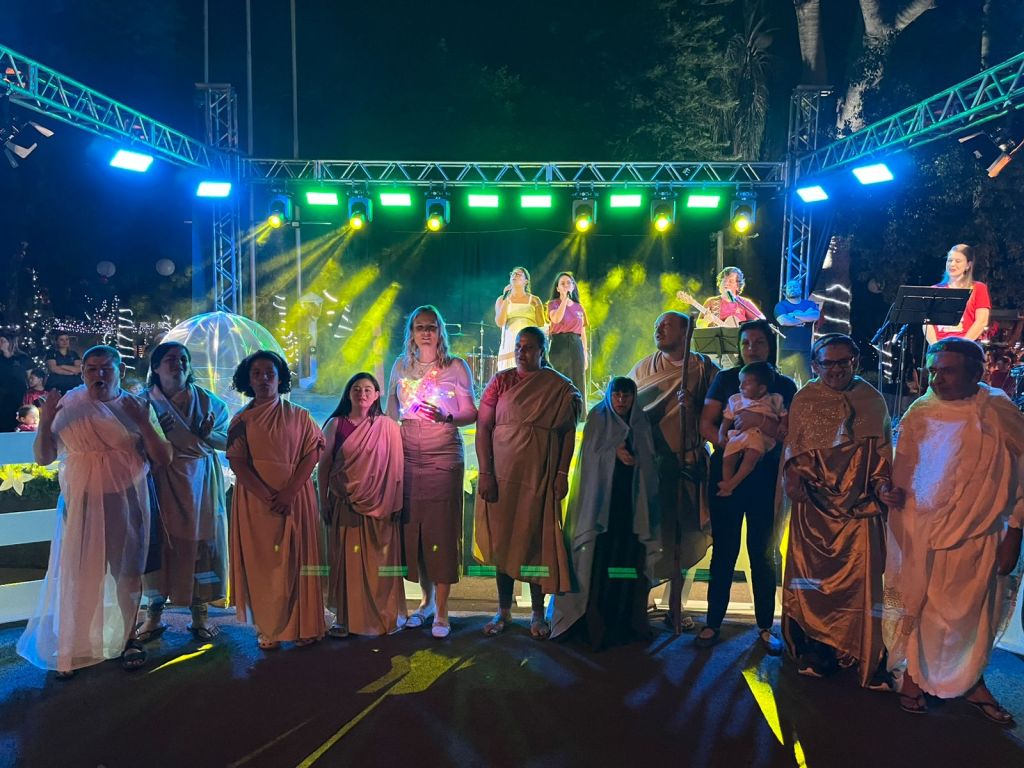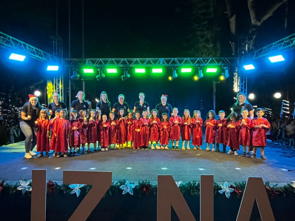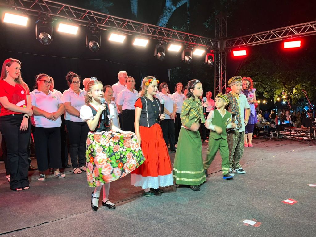 Um dos momentos mais aguardados da noite foi o acendimento das luzes de Natal, que simboliza o início do período festivo. A programação contou ainda com apresentações da APAE, Grupo Pensiero, EMEI Maria Schuster e CEPIB, que trouxe ao palco o espetáculo “A Estrela que Nos Guia”. O cantor André Barcellos e banda encerrou as atrações musicais.